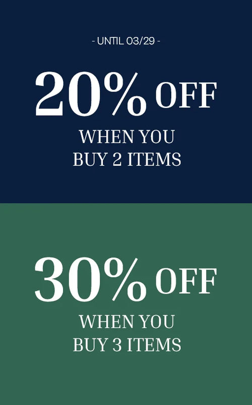 Until 03/29: 20% off from 2 items & 30% off from 3 items.*